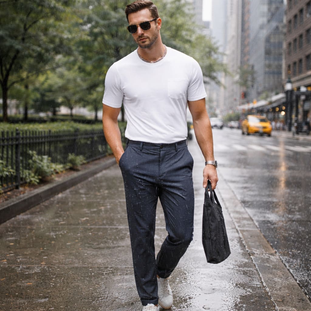 These waterproof work trousers combine a clean, tailored silhouette with advanced stretch technology for all-day comfort and mobility. The water-resistant fabric protects against light rain and daily wear, while maintaining a sharp, professional appearance. Ideal for modern city routines, travel, or busy workdays, this piece delivers functionality without compromising style.